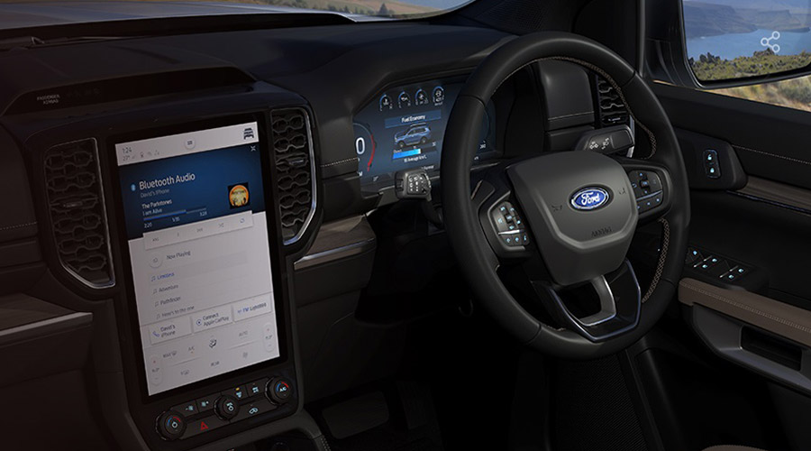 Desain yang ikonik dengan DNA khas Ford yang tercermin dalam bentuk C-Clamp sebagai lampu utama yang mengapit grille bagian depan untuk menegaskan ketangguhan